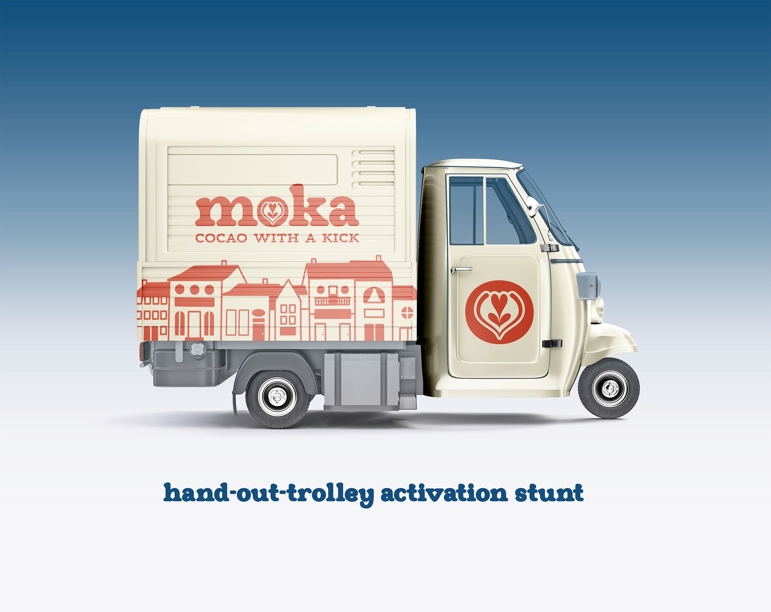 Moka is a pre-bottled mocha beverage that coffee and chocolate connoisseurs can enjoy on the go. The brand is an exercise in disruptive branding which opts for a bright, cheerful tone, encouraging its audience to savour the simple joys in life, like their daily commute.